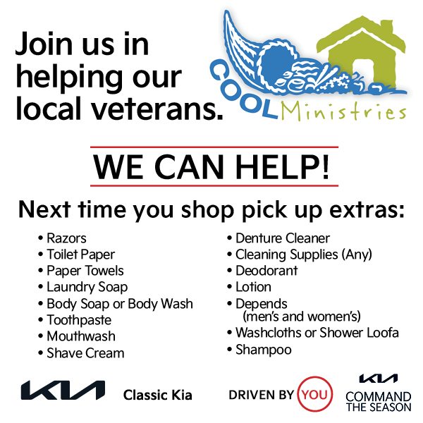 1. Donate money at coolministries.org/veterans-assistance/