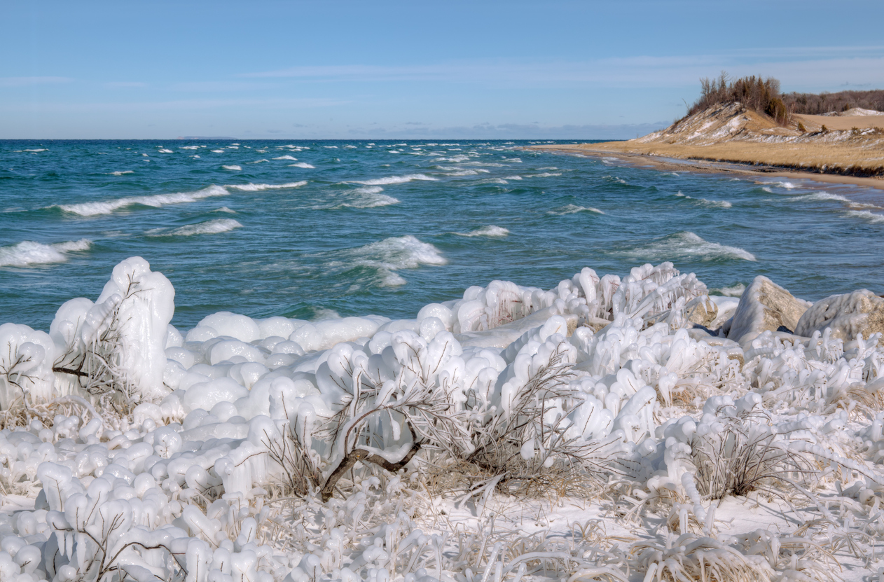 Summer is a prime time for vacationing and road tripping, but have you ever visited your favorite summer spots in the “off-season”? Wintertime is incredibly exciting and creates an ever-changing landscape of crystalline ice and sparkling snow across our favorite warm-weather destinations. The Sleeping Bear Dunes are one such spot that is utterly transformed into a marvelous kingdom of fluffy snow, peaceful winter beach front, and magical frozen forest hiking trails. Let’s check out some of the wonderful things to do in cold weather for a perfect seasonal getaway and give ourselves a break from the winter-doldrums.
