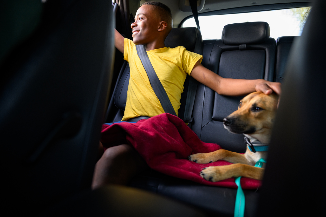 - Have a friend or family member that your dog is comfortable with sit in the back seat alongside your pal to help them remain calm and seated or lying down.