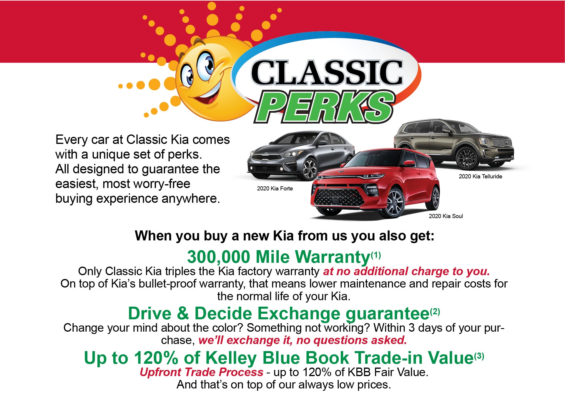 Every car at Classic Kia comes with a unique set of perks. All designed to guarantee the easiest, most worry-free buying experience anywhere.